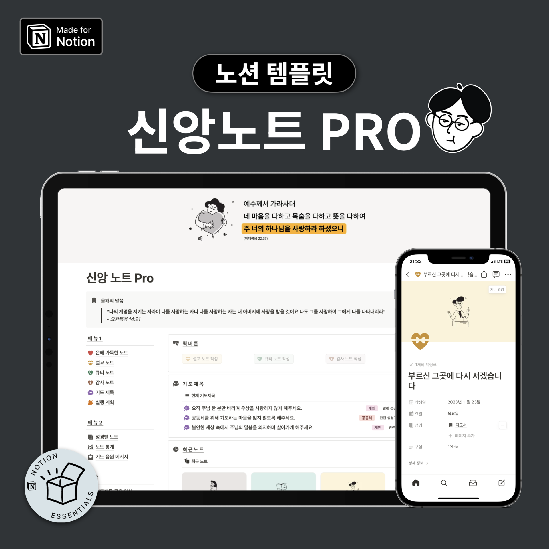 크리스천 노션 사용자를 위한 올인원 템플릿! 설교, QT, 감사 노트부터 기도제목까지 한 곳에서 체계적으로 작성하고 관리할 수 있습니다.